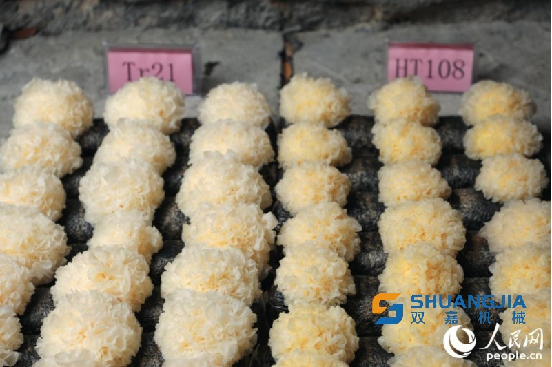 孙淑静介绍,从现场测产情况来看,新菌株的子实体呈淡黄色、朵形圆整紧致、耳片厚实内卷,平均产量相较目前主栽品种高出10%,总酚、黄酮含量分别提高约55%、60%,表现出丰产性好、活性成分含量高的特点,十分适合用作银耳深加工产品原料。